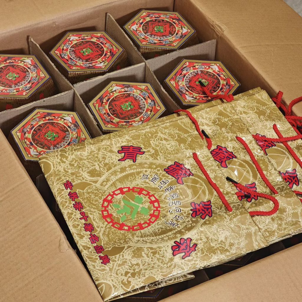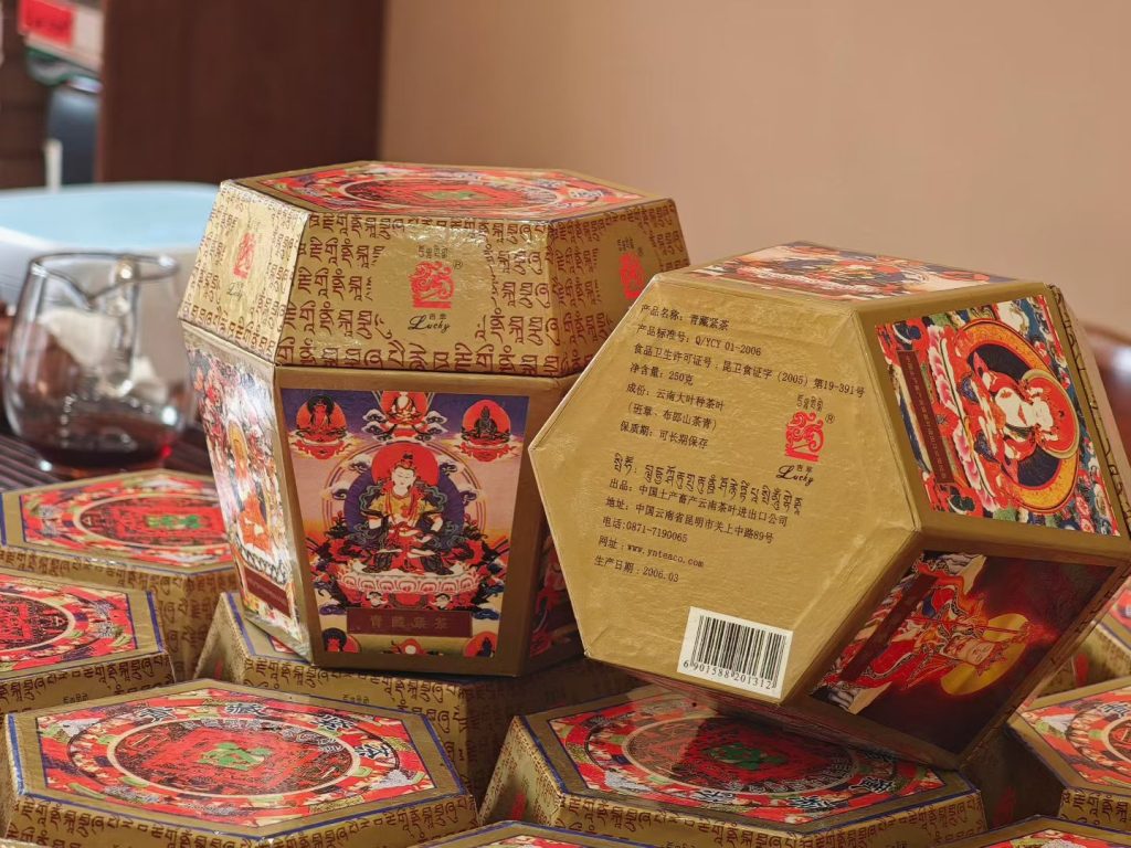在產品設計上,這款茶品頗具巧思,採用獨特的六角形彩盒包裝,每個蘑菇沱單獨裝入一個彩盒,也就是「一菇一盒」的規格。更為特別的是,彩盒的六個面分別印製有六尊佛像,這一鮮明標誌讓它被茶友親切稱為「六面佛」,辨識度極高。